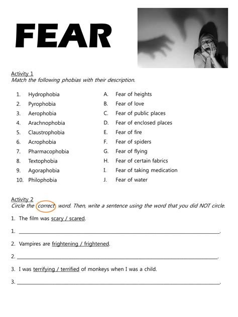 Worksheets are 8 fears holding you back, activity fear in a hat, facing your fears, overcoming my fears. Some of the worksheets displayed are overcoming, overcoming fear of change, t h e mission consumer. Fear is an emotion caused by a threat or danger.