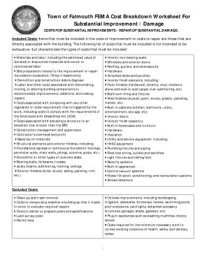 Web Town Of Falmouth Fema Cost Breakdown Worksheet For Substantial Improvement / Damage 1 Costs For Substantial Improvements / Repair Of.